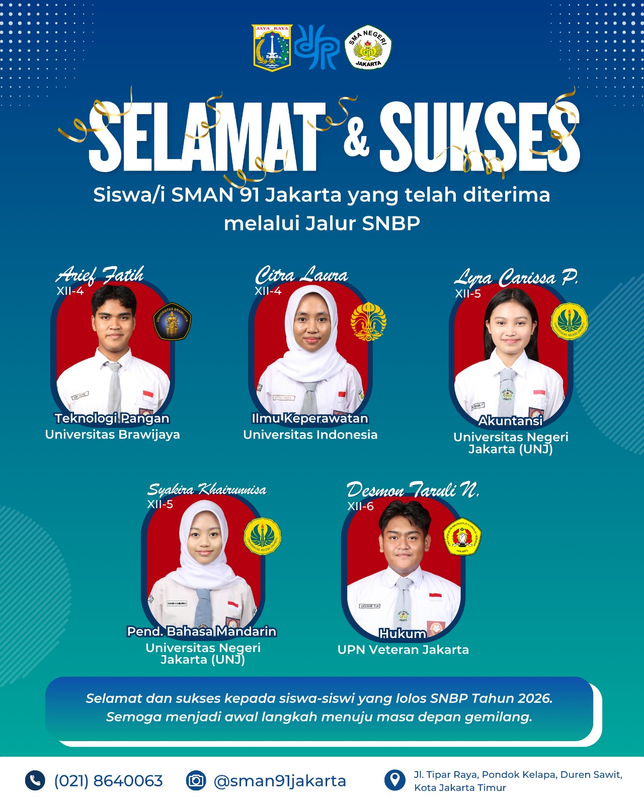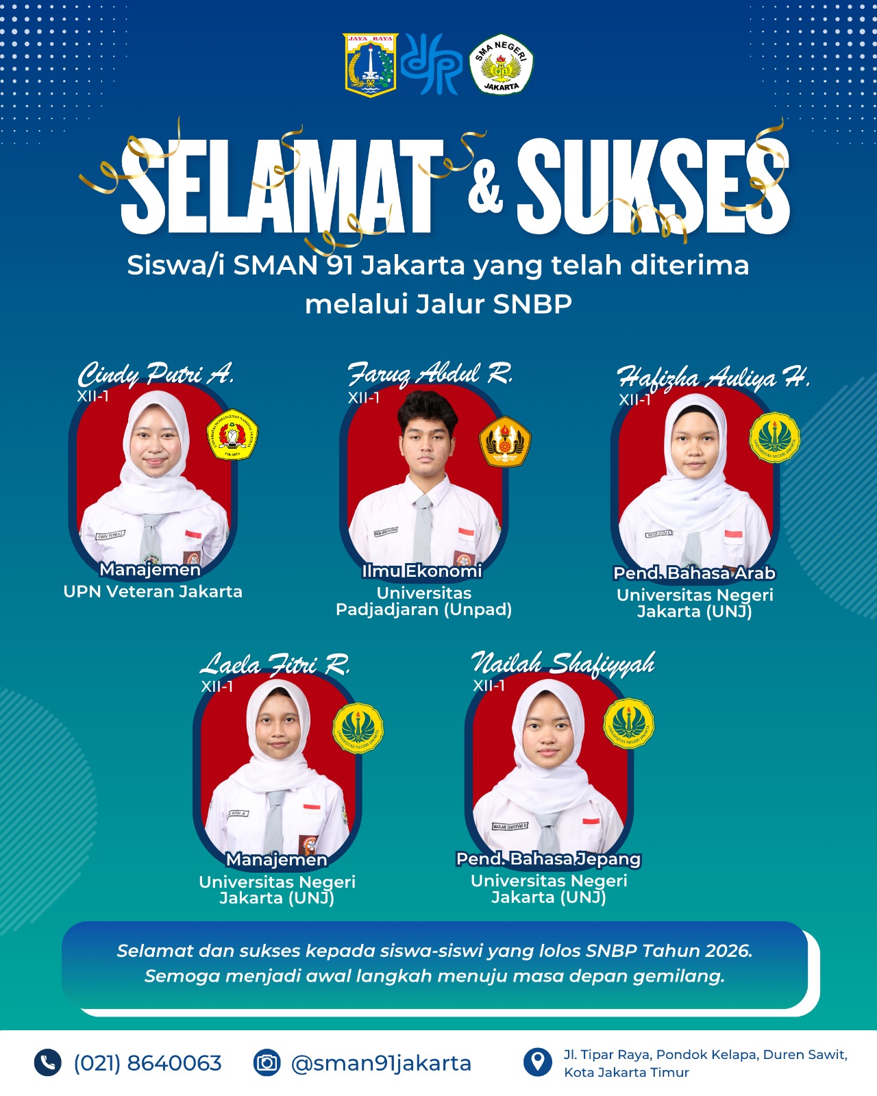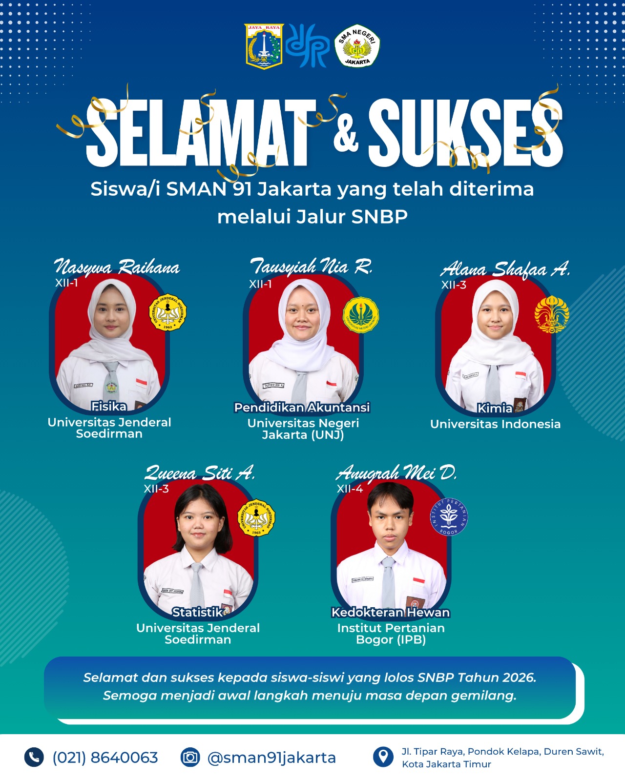 Hasil Penerimaan Perguruan Tinggi Negeri Jalur SNBP SMAN 91 Jakarta Tahun 2026 Admin SMAN 91 10 April 2026