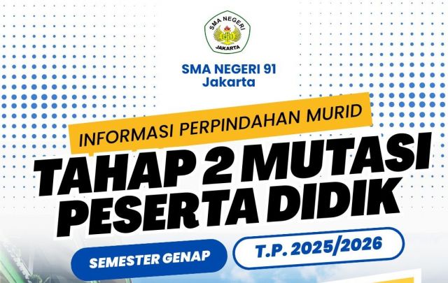 Admin SMAN 91 | 04 Februari 2026HASIL SELEKSI PERPINDAHAN PESERTA DIDIK TAHAP 2 SEMESTER GENAP TA...